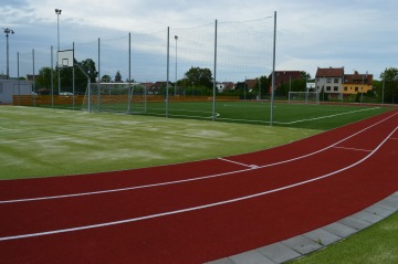 Vznikly zde také běžecké dráhy, konkrétně 4 dráha o délce 200 m s povrchem polyuretanová vrstva CONIPUR. Vybudovány byly rovněž areálové chodníky ze zámkové betonové dlažby 400 m2, mobilní ocelové tribuny pro 60 osob, sklad nářadí, šatny a sociálních zařízení z typových obytných a sanitárních kontejnerů a samozřejmě venkovní osvětlení a vegetační úpravy.